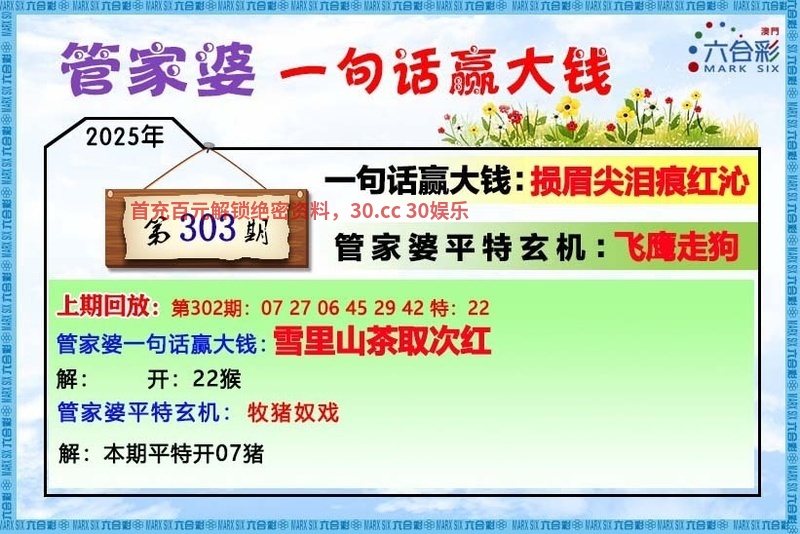 | 308期:三码 | 请联系30.cc娱乐城客服领取资料 | |